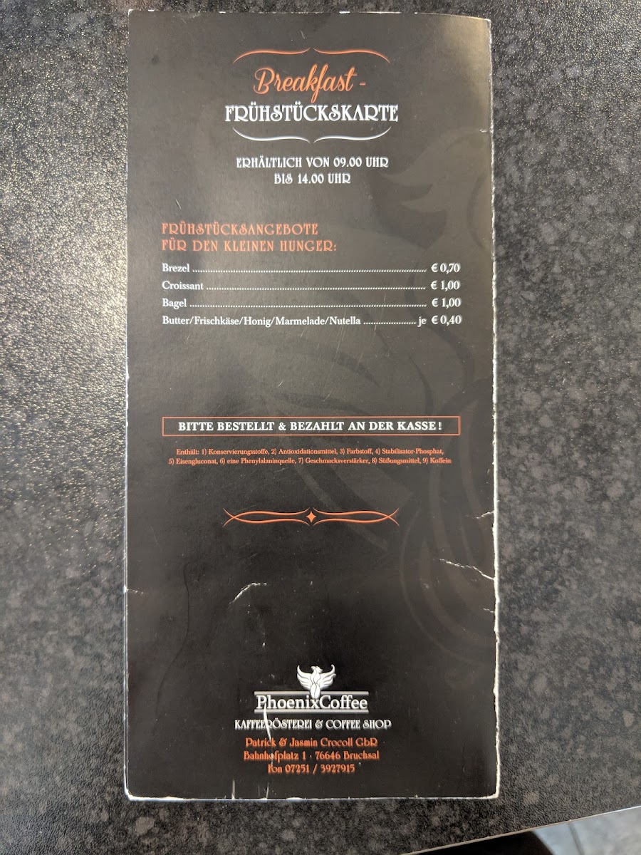 Whether you're grabbing a quick coffee or indulging in a leisurely brunch, Phoenix Coffee embodies the heart of Bruchsal's café culture. An experience infused with warmth, flavor, and community, it's a must-visit destination every day of the week—except Sundays!